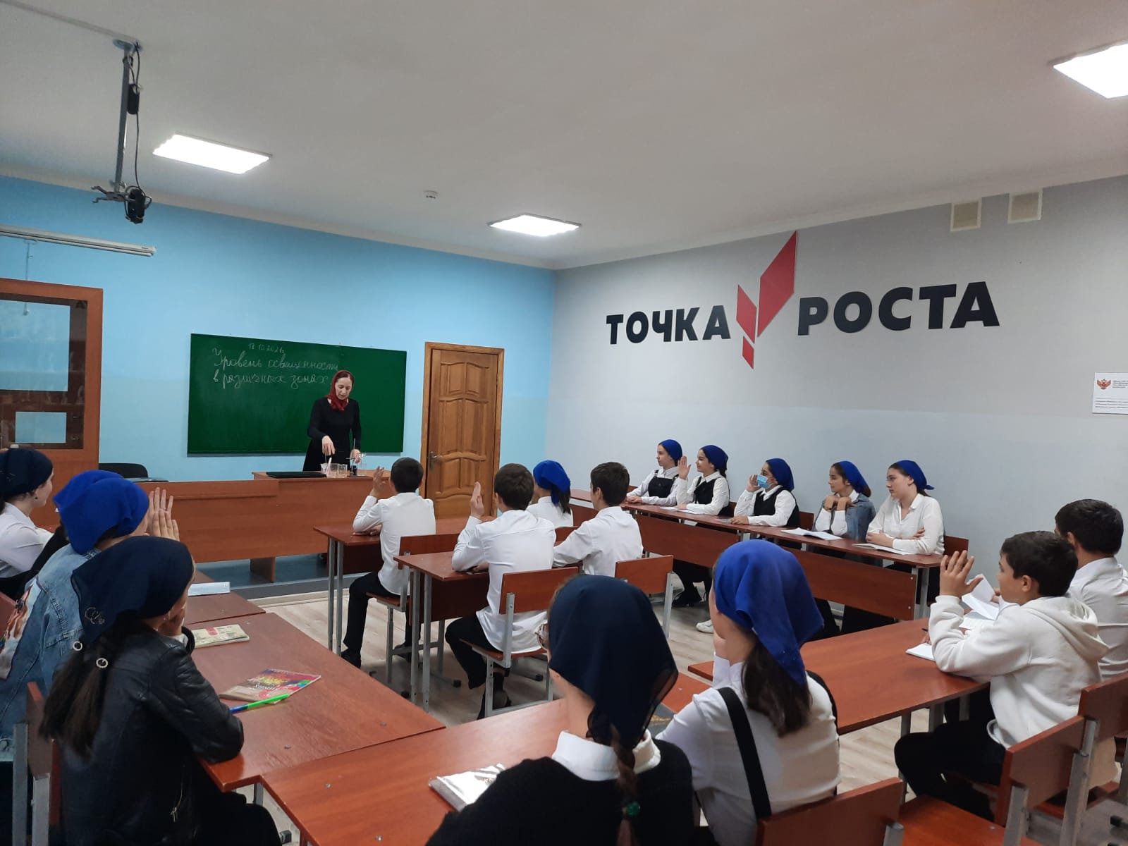 Учитель химии – Мадагова Мадина Дукваховна провела занятие по теме: «Растворы». Цель занятия: исследовать зависимость растворимости от температуры. На занятии был проведен лабораторный опыт № 6 «Наблюдение за ростом кристаллов» с использованием цифрового микроскопа.