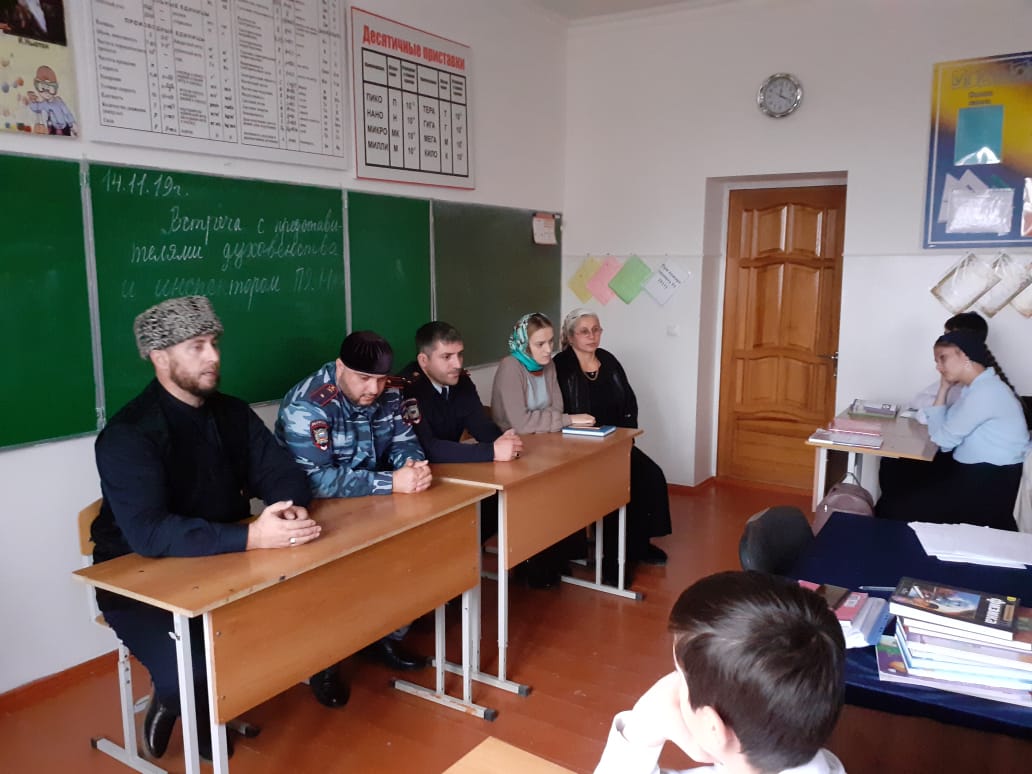 14.11.201914.11.2019г. в школе организована и проведена встреча на предмет противодействия распространению ложной информации и разжиганию межличностных конфликтов путем дезинформации населения через ИКТ. Перед учащимися 8-11 классов выступили кадий Ачхой-Мартановского муниципального района Доцуев А-Р., начальник УУП ОУП и ПДН Мусаев Б.С., инспектор ПДН Муклиев М.Л. и специалист Управления образования Ачхой-Мартановского муниципального района Алсабекова З.Х.