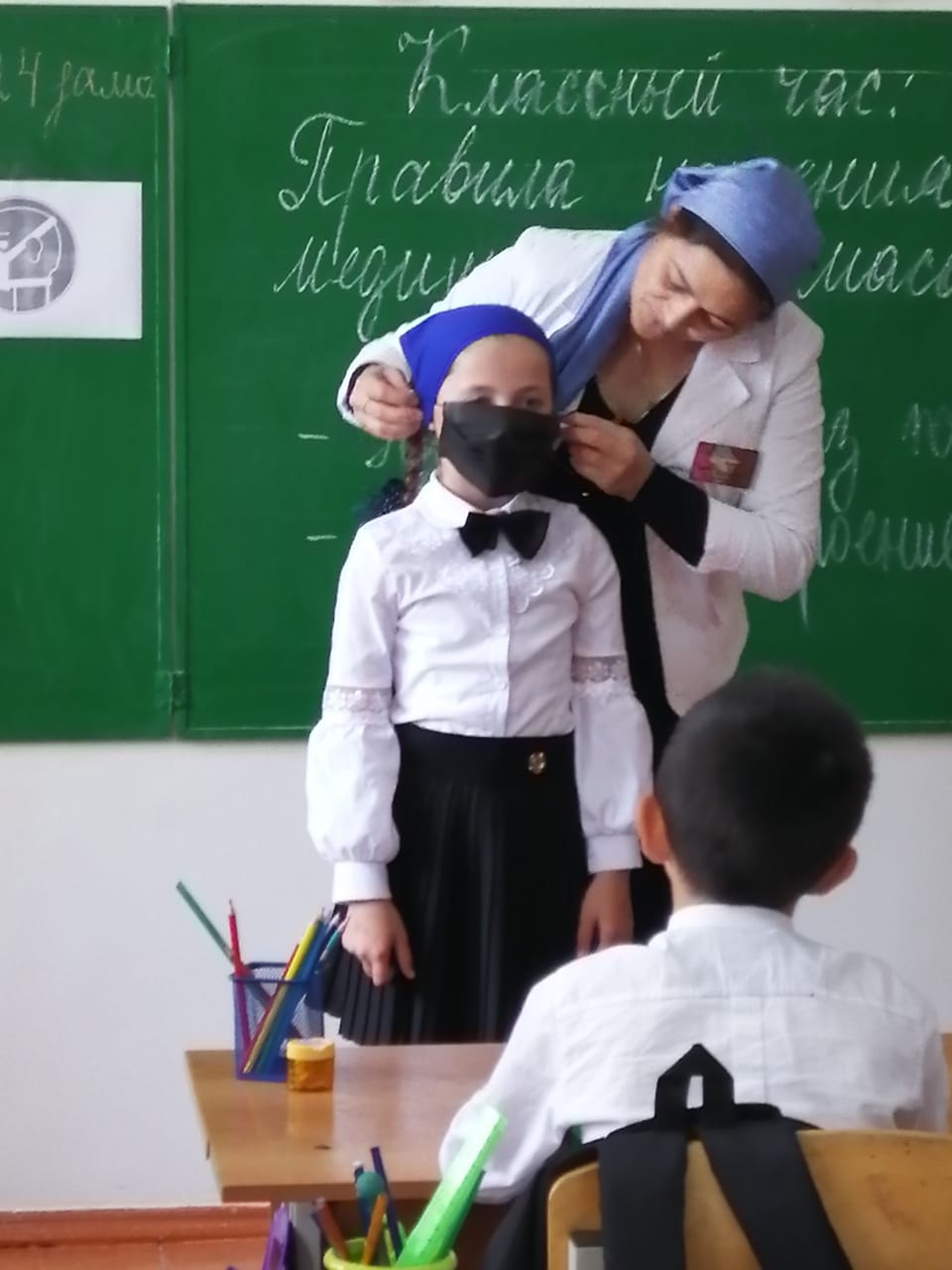 Во 2 классе (классный руководитель Нагалаева Н.А.) проведен классный час «Правила ношения медицинских масок».