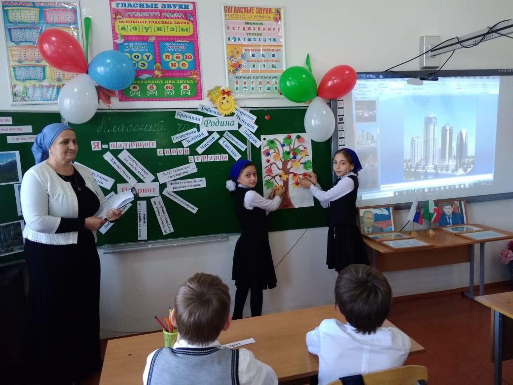 В рамках конкурса «Воспитать патриота» в 4 «А» классе (классный руководитель Туганова А.Ш.) проведен классный час «Я патриот своей страны»