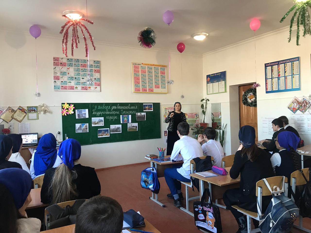13 января в школе проведены классные часы на тему «Восстановление ЧИАССР», «9 января – День восстановления государственности чеченского народа»;