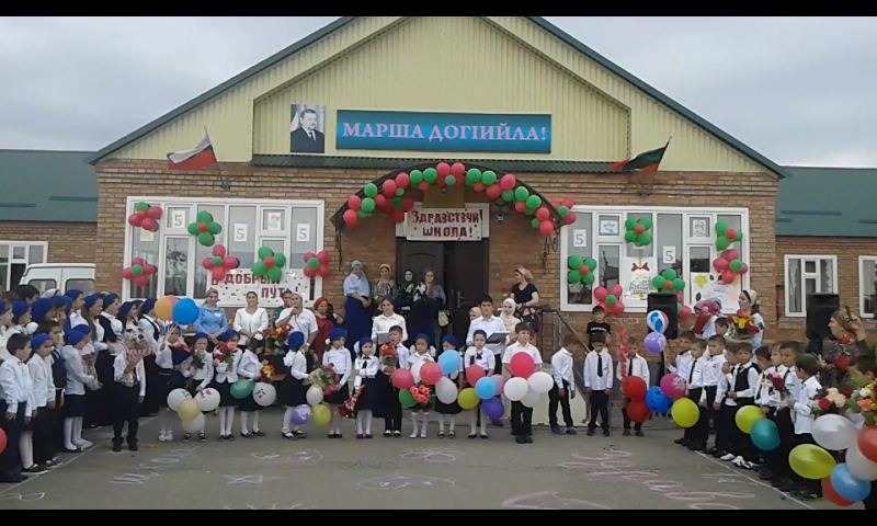 Торжественная линейка началась гимном РФ и ЧР, после которого директор школы Джамурзаева З.А. поздравила всех присутствующих с праздником и пожелала успехов в овладении знаниями.