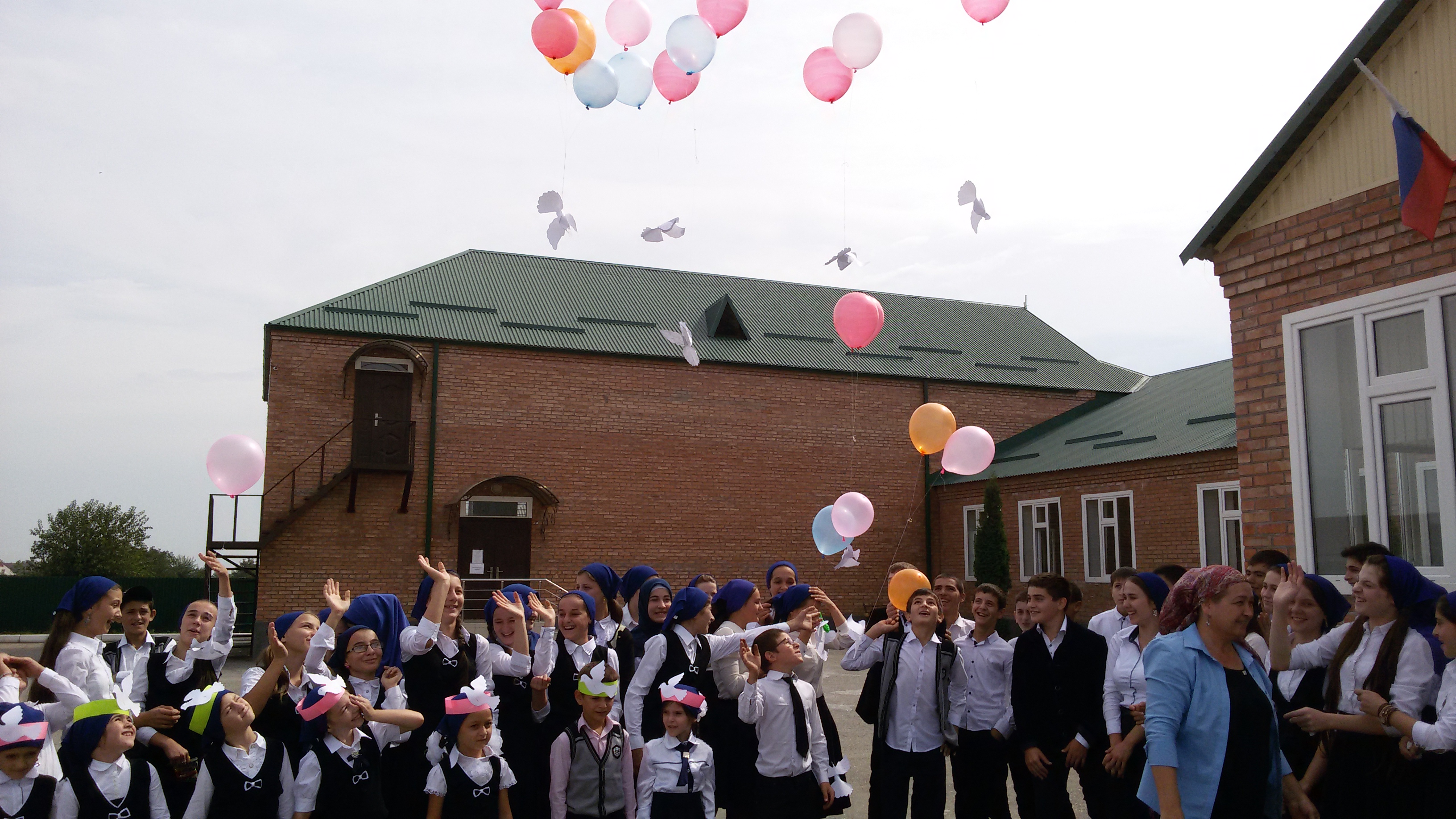 Заранее дети вместе с классными руководителями сделали бумажных белых голубей, которые были прикреплены к белым воздушным шарам. Акция выпуск в небо голубей Мира прошла с радостью и интересом. В акции приняли участие все учащиеся школы, педагогические работники. С пожеланиями Мира, Добра, Счастья и процветания нашей Родины к участникам акции обратилась администрация школы. Мероприятие прошло на высоком патриотическом уровне.