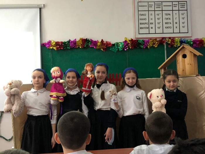 Учащиеся кружка "Английский клуб говорения" представили в школе, показ кукольного театра «Голделокс и три медведя».