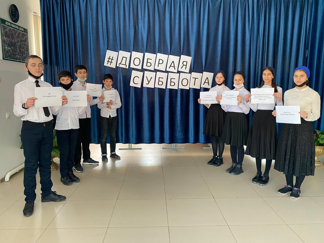 В рамках проведения акции "Добрая суббота", учащиеся школы провели флешмоб, в поддержку жителей региона заразившихся короновирусной инфекцией.