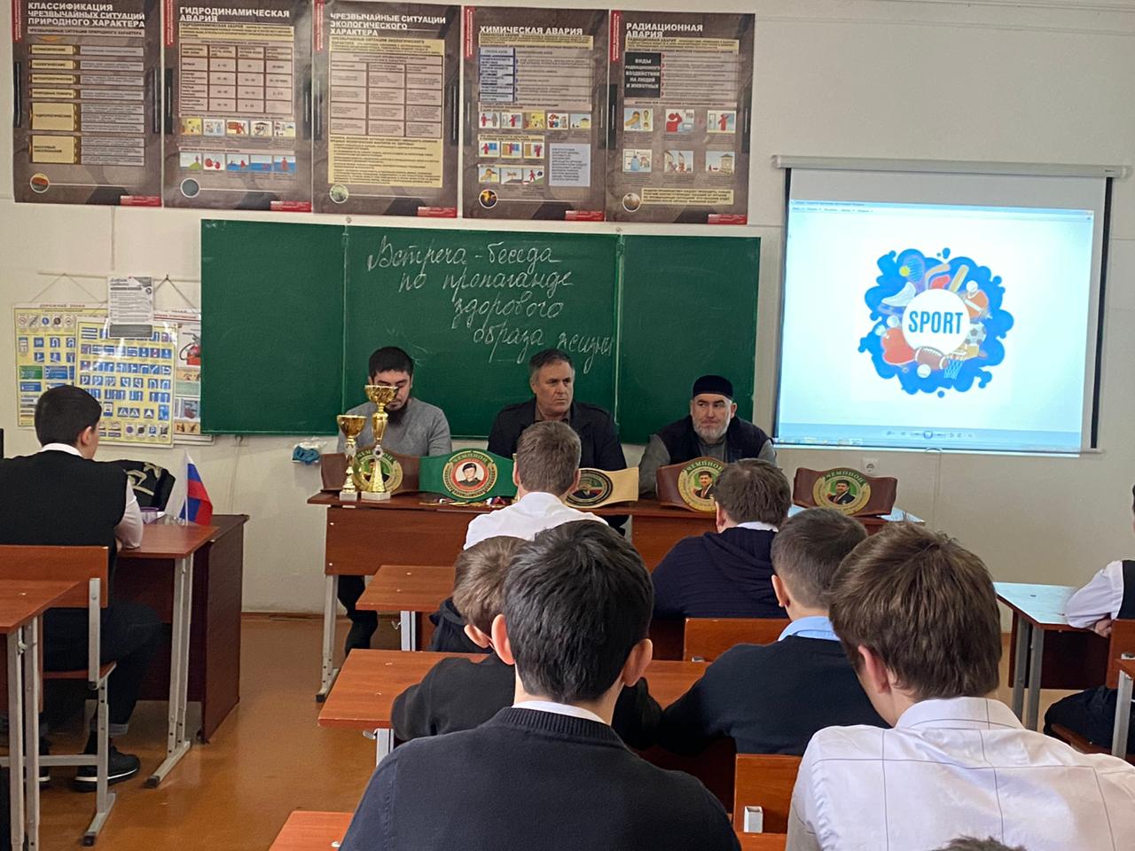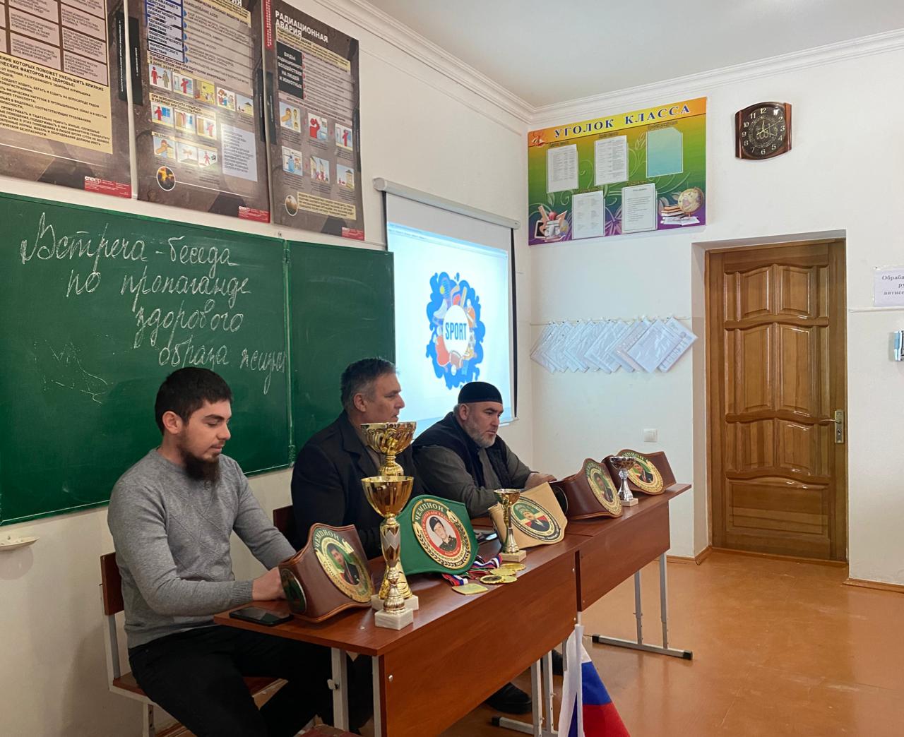 16.02.2021В целях профилактики правонарушений, употребления психоактивных веществ и формирования у учащихся здорового образа жизни, в школе проведена встреча учащихся с заместителем директора Спортивной школы им.Т-А.Кукаева Багаевым Х.И.