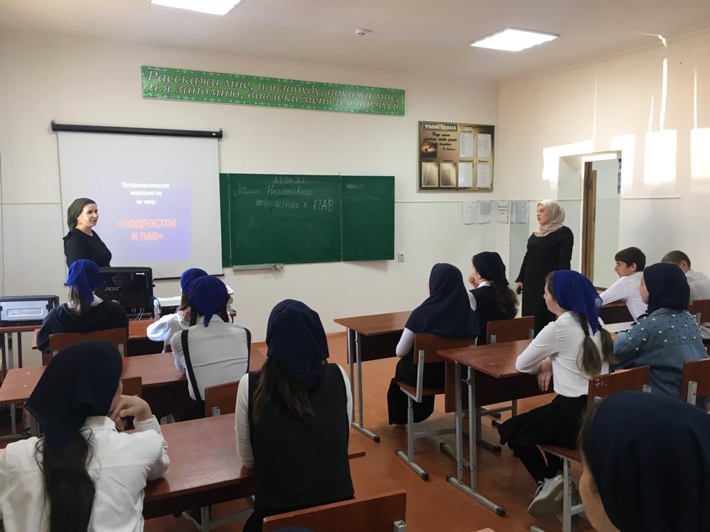 В целях профилактики и формирования у детей и молодежи негативного отношения к ПАВ, а профилактики незаконного оборота наркотических средств и психотропных веществ социальный педагог совместно с педагогом-психологом под руководством заместителя директора по ВР провели профилактические беседы с обучающимися 7-8 классов