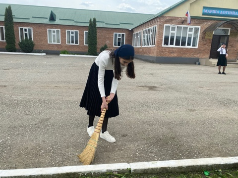 К Празднику Весны и Труда учащиеся МБОУ "СОШ №8 с. Ачхой-Мартан" провели субботник на территории школы.