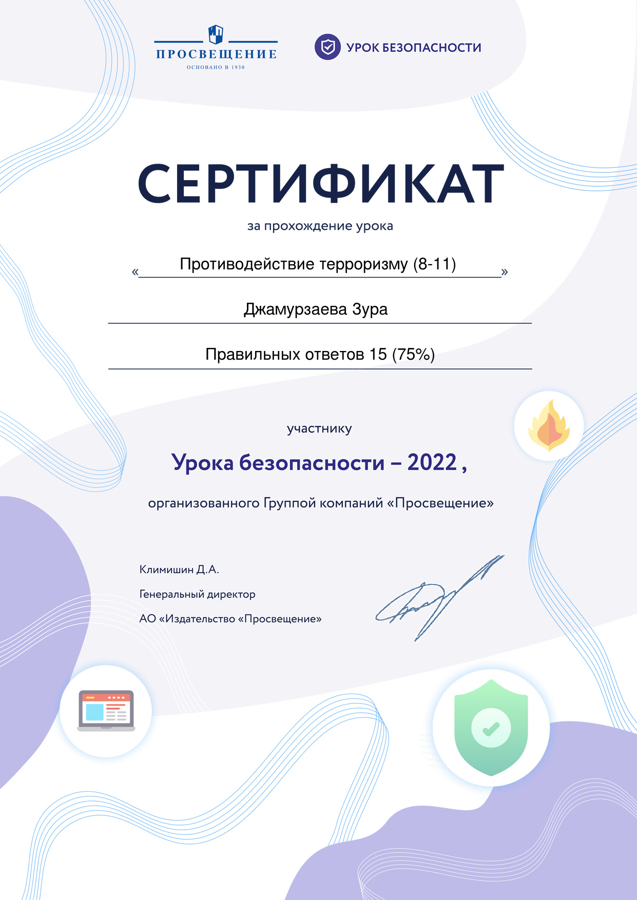 Во исполнения письма Главы администрации Ачхой-Мартановского муниципального района Т. М. Хучиева №1611 от 05.05.2022г. «О необходимости проведения профилактических и воспитательных мероприятий по формированию у населения неприятия идеологии терроризма, формирования у подрастающего поколения активной гражданской позиции и критического отношения к идеям радикального характера» проведены беседы с учащимися 5-10 классов с просмотром видеоролика «Урок безопасности» и проведено тестирование учащихся «Противодействие терроризму» на портале урокбезопасности.рф.