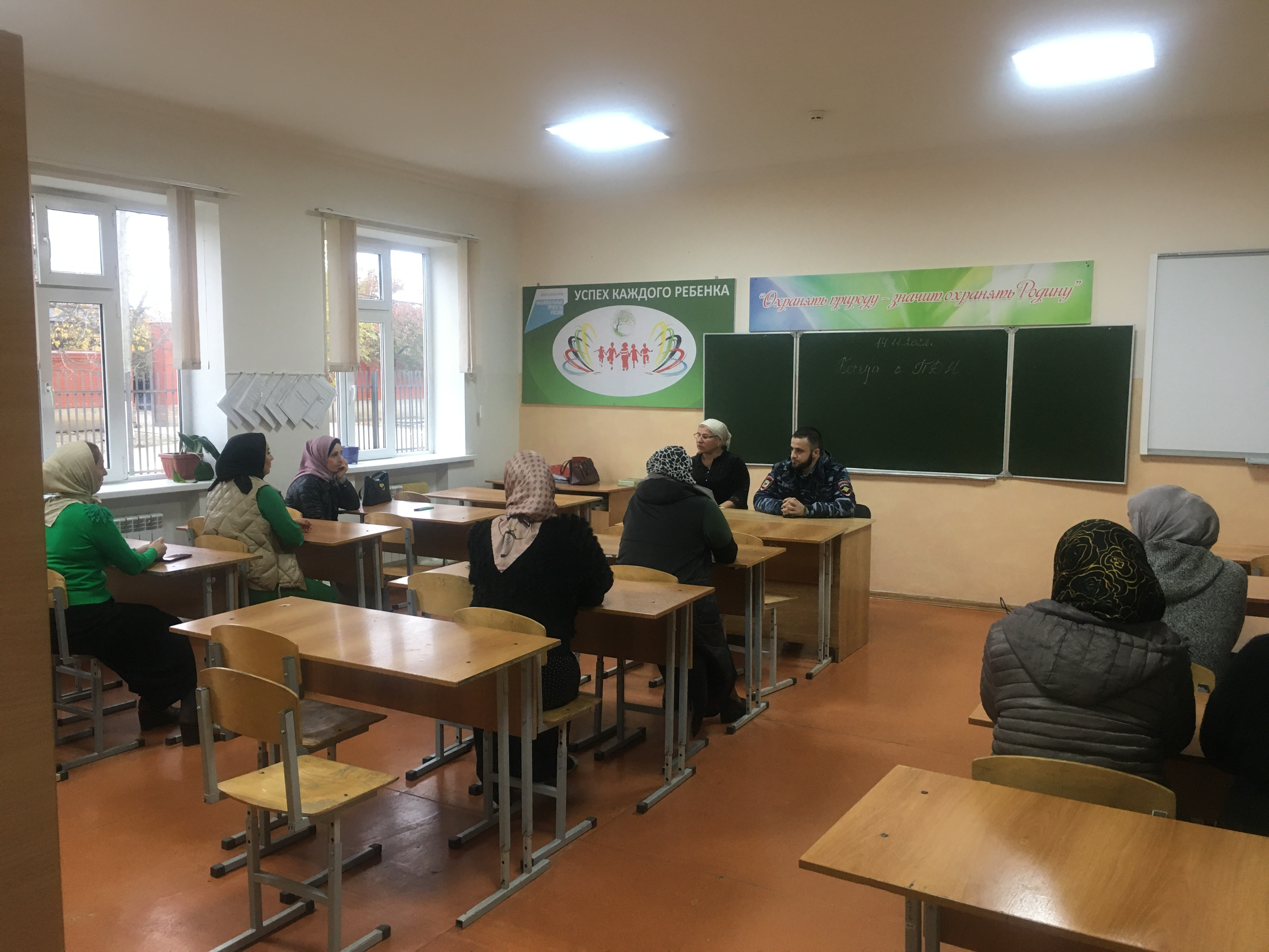 В рамках реализации поручения Национального антитеррористического комитета от 09.08.2022 года, в целях повышения эффективновности профилактической деятельности проведены профилактические беседы с родителями и учащимися с участием инспектора ПДН.