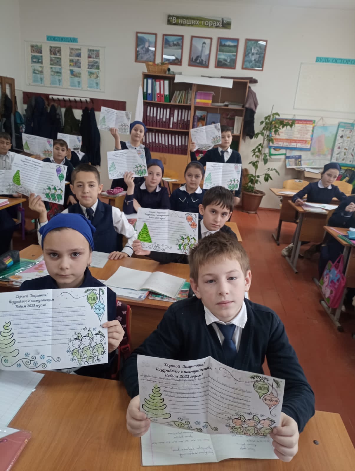 В рамках участия во Всероссийской молодежной акции «Фронтовая открытка» обучающиеся 3-4 классов подготовили самодельные открытки с новогодними поздравлениями военнослужащих, выполняющих боевые задачи.
