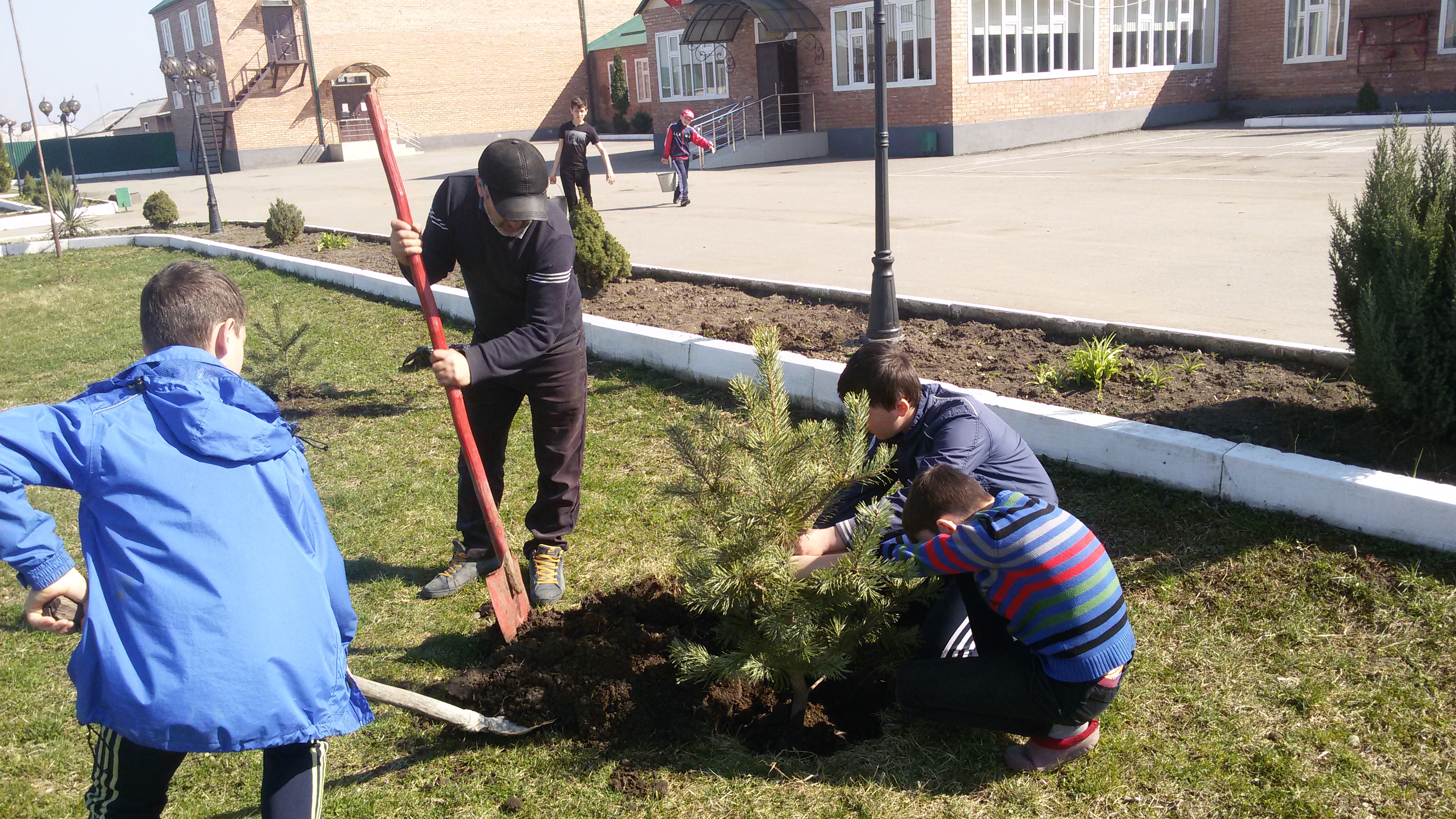 В рамках районной экологической декады «Озеленим республику» 24-27 марта 2017 года учащиеся 5-9 классов под руководством зам. директора по воспитательной работе Цумаевой Л.С. провели посадку саженцев сосны, березы, вишни и сливы по периметру школы.