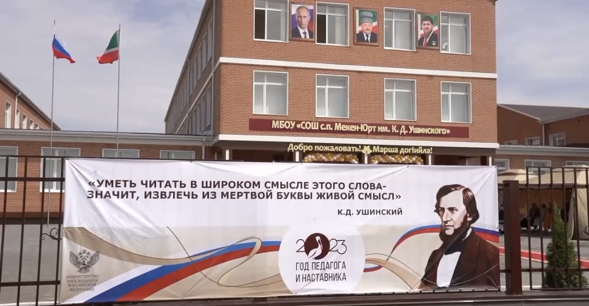 В СЕЛЕ МЕКЕН-ЮРТ НАДТЕРЕЧНОГО МУНИЦИПАЛЬНОГО РАЙОНА ЧЕЧЕНСКОЙ РЕСПУБЛИКИ СОСТОЯЛОСЬ ОТКРЫТИЕ НОВОЙ ШКОЛЫ, НАЗВАННОЙ ИМЕНЕМ ОСНОВОПОЛОЖНИКА ОТЕЧЕСТВЕННОЙ НАУЧНОЙ ПЕДАГОГИКИ КОНСТАНТИНА ДМИТРИЕВИЧА УШИН