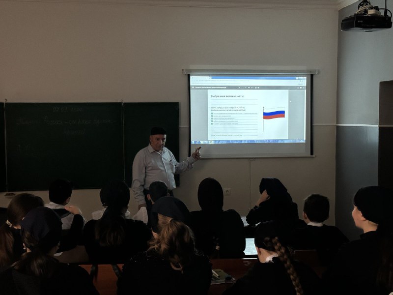 «Россия - мои горизонты» на тему «Россия-страна возможностей». В нашей большой стране каждый гражданин имеет равные возможности для получения качественного образования.В ходе занятия школьники узнали о том, что за последние годы наше государство создало множество новых образовательных и карьерных возможностей для школьников, студентов и молодых специалистов.