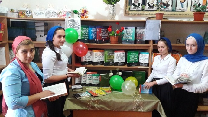 Интересная, содержательная беседа о словарях (орфографических, пунктуационных, словообразовательных, антонимов, синонимов и др.), о том, что такое словарь, какие словари бывают, о дне рождения Владимира Даля, создателя Толкового словаря живого великорусского языка, о разнообразии и создателях словарей на чеченском языке, заинтересовала участников мероприятия. Выставка словарей также произвела впечатление.