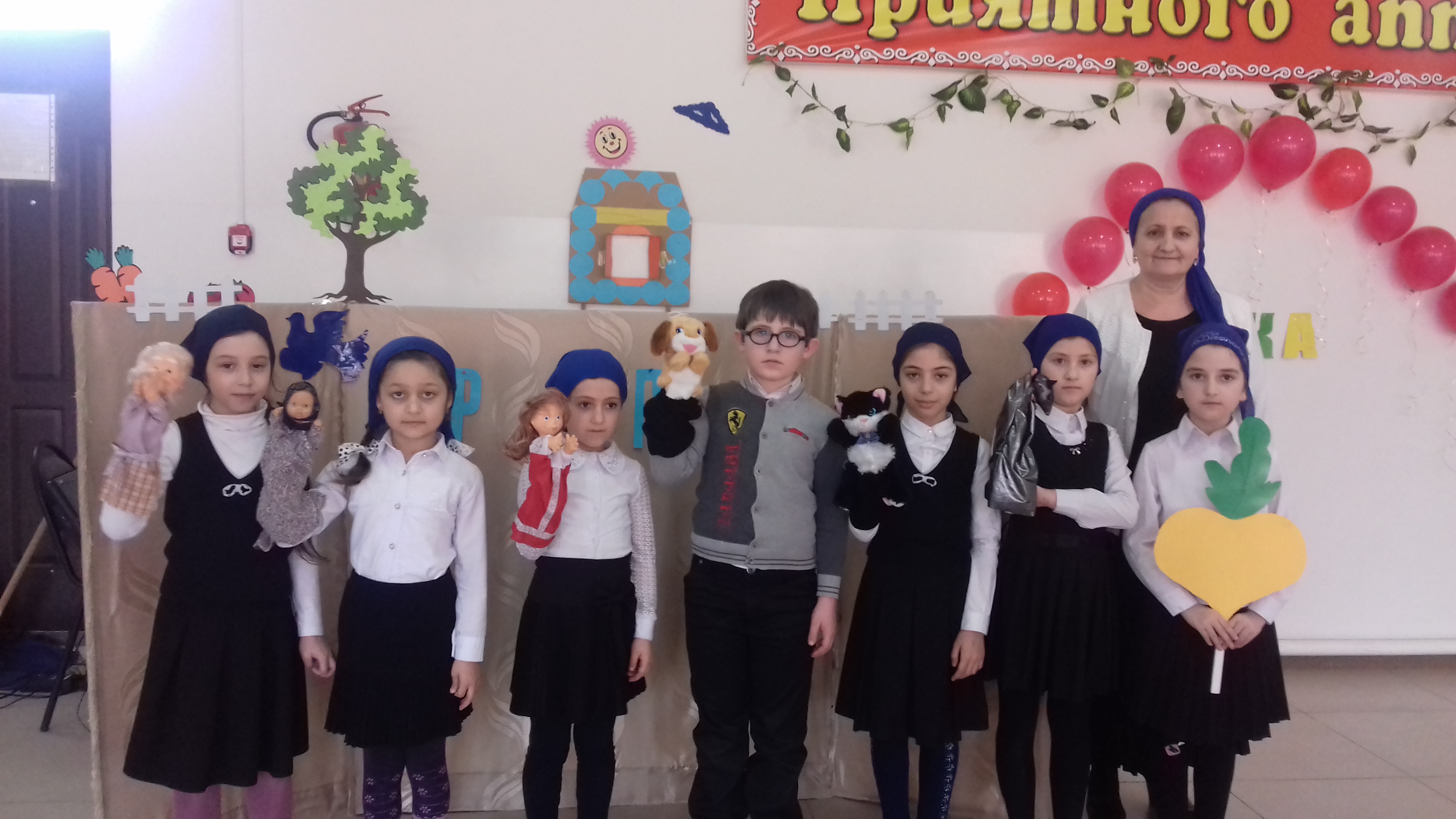 Второклассники представили на суд зрителей театральную постановку сказки «Репка» на новый лад. Ученики 2 «а» класса под началом классного руководителя Тугановой Асет Ширвановны несколько недель готовились к этому событию. Сами готовили декорации, шили кукол, пели песни.