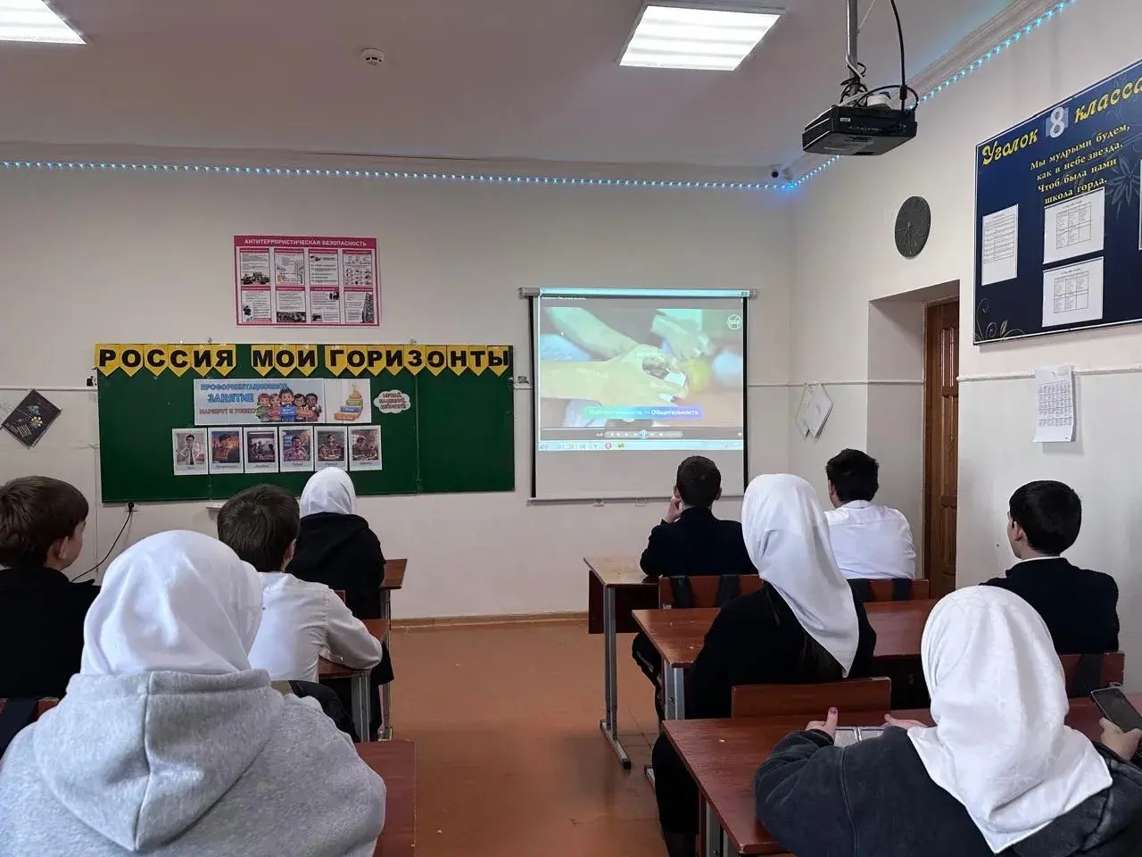Занятие прошло в интерактивной форме: ребята участвовали в обсуждениях, выполняли практические задания и просматривали мультимедийные материалы, которые помогли более ясно представить возможности, открывающиеся перед молодым поколением в России.